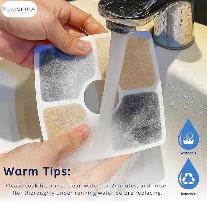 - Nispira branded filters contain 50% more carbon than generic brands for better and longer-lasting filtration. Suggest to change every 2-4 weeks to maintain water freshness.