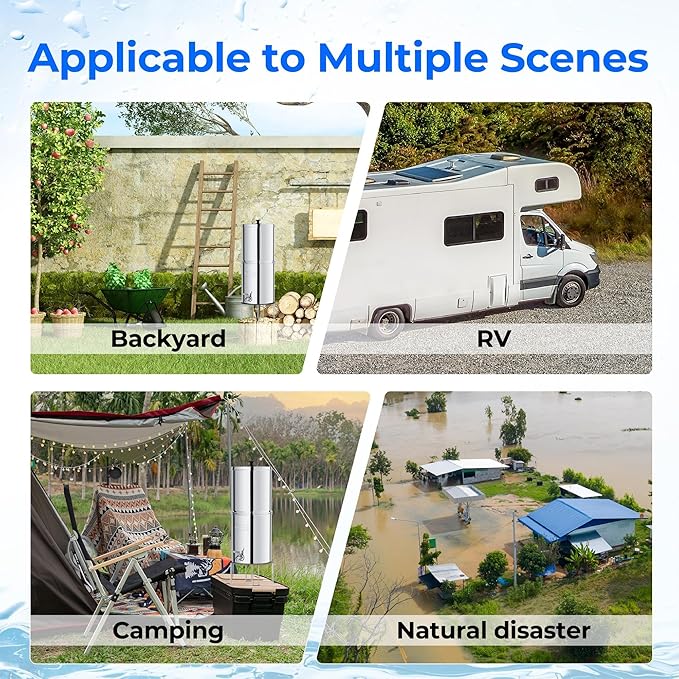 - Large Capacity: The 2.25-gallon Waterdrop King Tank water filter serves a family of 4 for indoor/outdoor use. Pre-use flush required by connecting to a faucet for 1 min. Incompatible faucets may splash but do not compromise filter integrity.