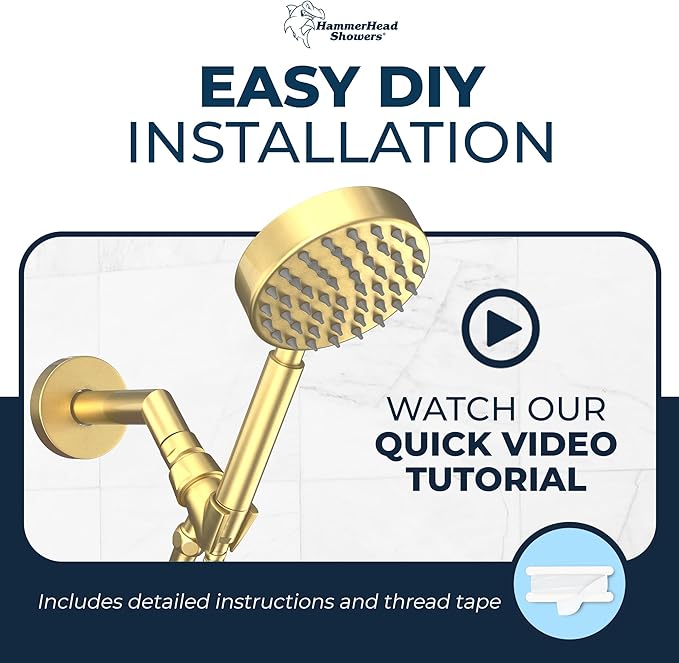 HammerHead Showers® Solid Metal LOW FLOW Handheld Shower Head with Hose and Brass Holder - BRUSHED GOLD – Water Saving 1.75 GPM Detachable Shower Head - Adjustable Shower Wand Bracket & 6ft Hose