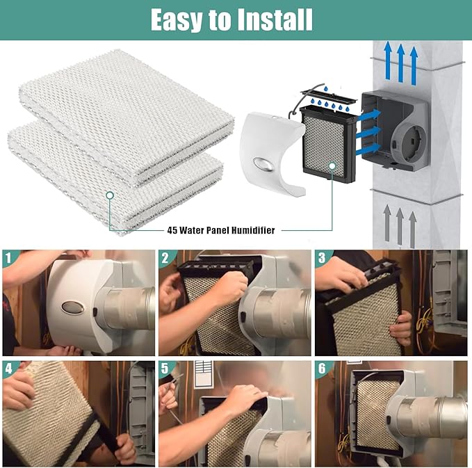 - Easy to Install : The installation of the 45 humidifier filter is easy. Just remove the old filter and place the brand new filter in its original position. in addition you feel more comfortable while also preserving items in your home susceptible to damage from changing humidity or dry conditions.