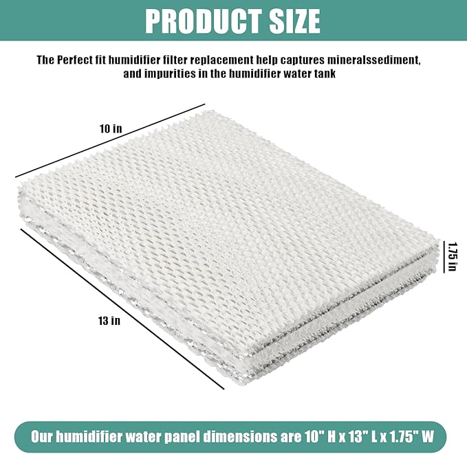 - Humidifier Filters Replacement : Our humidifier water panel dimensions are 10" H x 13" L x 1.75" W, Filter design maximizes moisture output from the humidifier, These filters are ideal for anyone who needs a clean and effective humidifier experience.