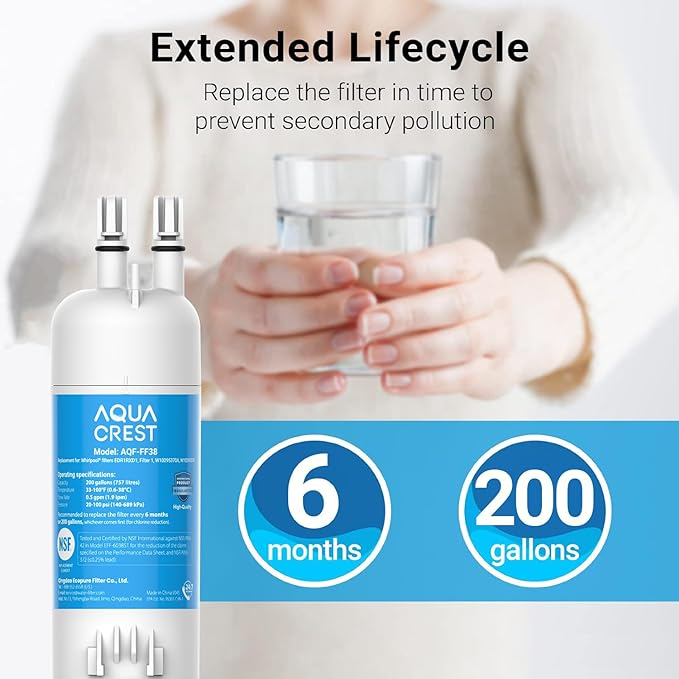 - 100% safe materials: AQUA CREST adopted BPA-free and food-grade materials in making this refrigerator filter. This claim is verified and backed by the NSF 372 certification that declares this filter housing lead-free.