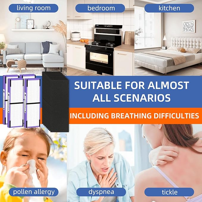 - 【VALUE PACKAGS】:Package includes 4 x H13 True HEPA Filter B and 8 x Activated Carbon Filters.HEPA Filter Dimensions: H: 15-7/10" x L: 4-1/2" x W: 1-3/10",Carbon Filter Dimensions: H: 15-7/10" x L: 4-1/2" x W: 1/5".For the best performance,it is recommended to replace the HEPA filter every 6-8 months,replace the activated carbon pre-filter every 2-3 months for the best performance (depending on your usage and environment),and obtain higher filtration performance for long-term use.
