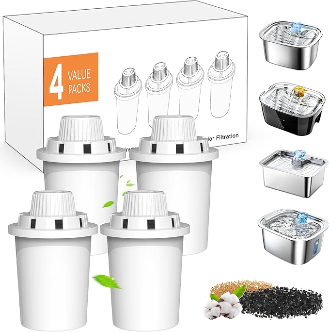 Replacement Filter for Lesotc Lage Dog Water Fountain, 4 Pack Water Filter for Stainless Steel Pet Fountain for Large Dogs- Vertical Filtration for D2223,D2322,D2341,D2419 Lasts Two Months