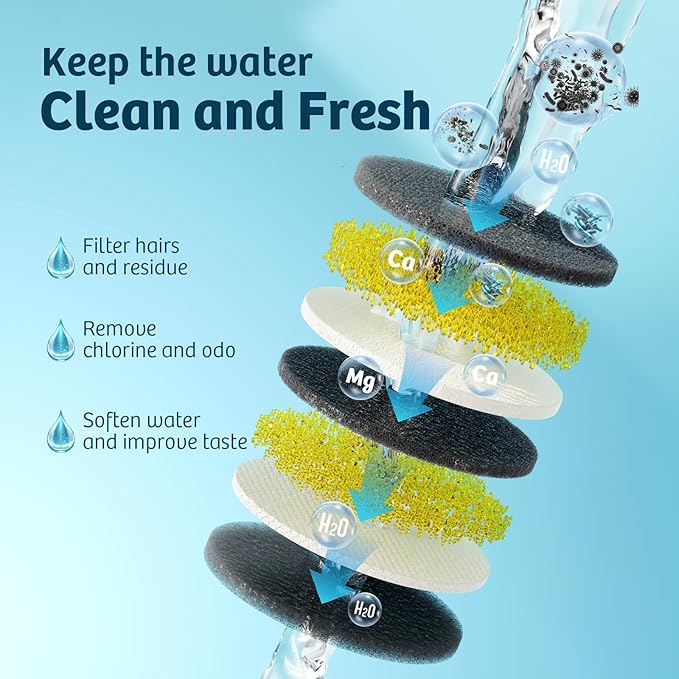 - [7 Layer Filtration] This water filter is made in 7 layer filtration, combines high-density activated carbon and ion exchange resin filters, efficiently eliminating hair and heavy metals from the water, all the while preserving water quality and boosting oxygen levels.Soften water and improve taste,let our furry friend enjoy purer water