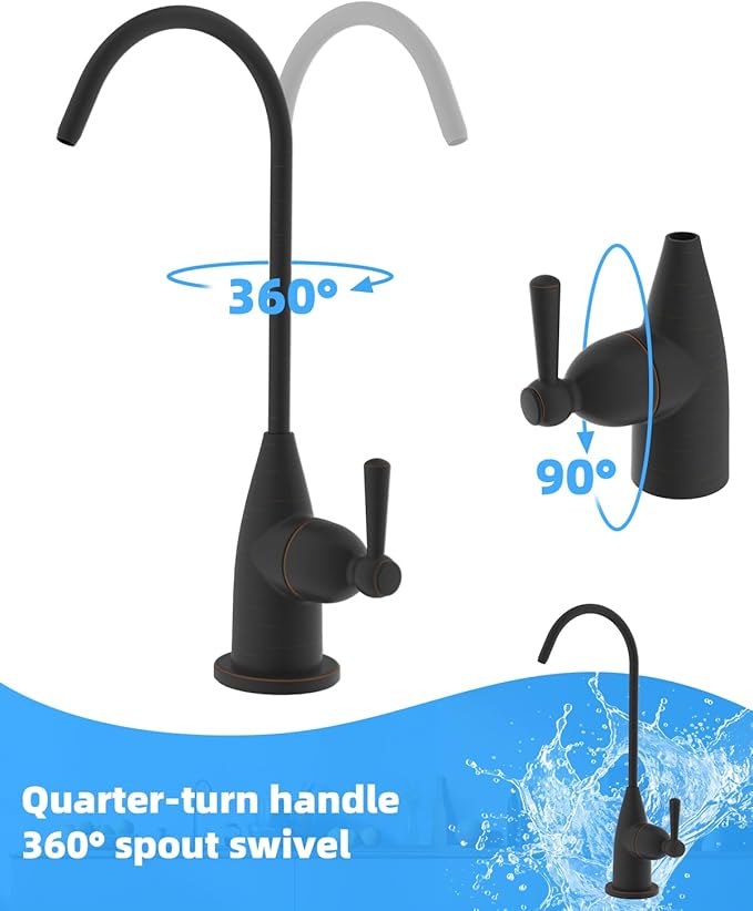 - User-friendly: This drinking water faucet with 360-degree spout swivel and the 90° single lever handle makes sure you can access water from any angle or position with ease