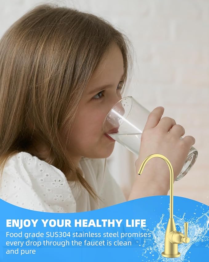 Hibbent Drinking Water Faucet for Bar and Kitchen Sink, Stainless Steel Reverse Osmosis RO Faucet for Under-Sink Filtration System, Brushed Gold Finish