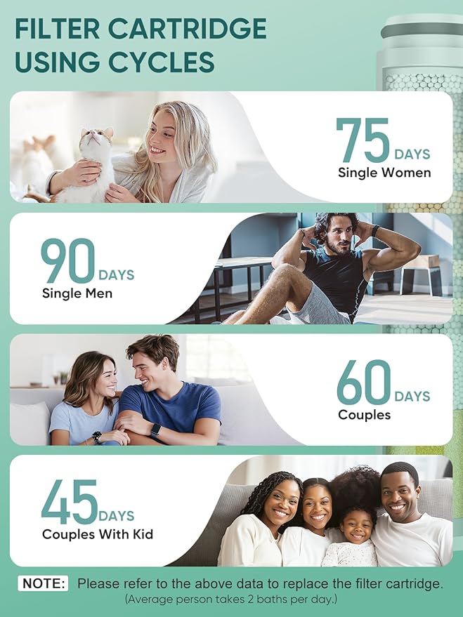 - Standard: Features a 20-layer filtration system that effectively removes chlorine and heavy metals from water. Recommended replacement cycle: 3-4 months (the specific lifespan depends on the water quality in your area).