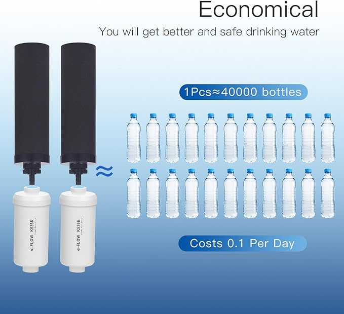 - Compatible & Universal:The filter is compatible with the Travel, Big, Royal, Imperial, Light, and Crown Berkey Series and Berkey BB9-2 black filters. Furthermore, it works with the Fachioo Gravity-fed Water Filter System. Berkey did not purchase or sponsor the water filter. The brand Fachioo is independent. Please connect to a faucet to flush the filter for one minute before using. Note: Splashing may happen if the faucet is not completely suitable, but it won't harm the product.