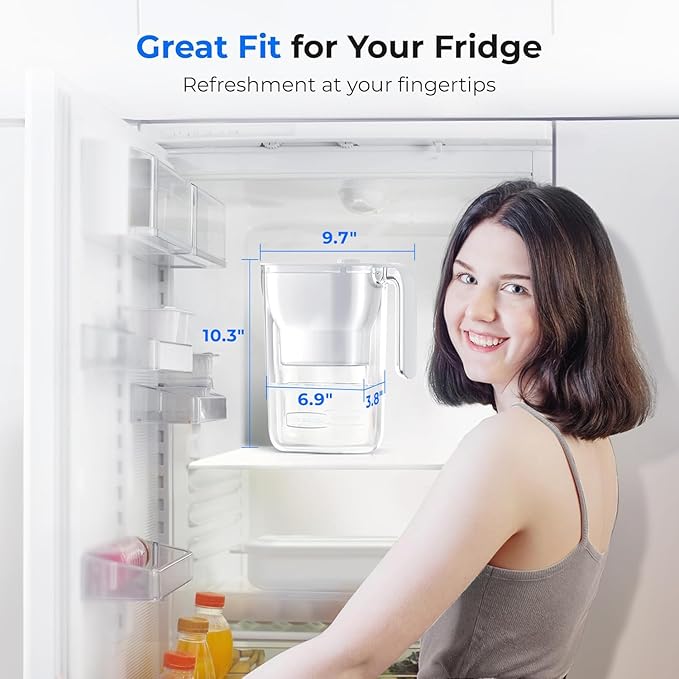 - [Quality Materials] The pitcher is crafted from food-grade BPA-free plastic with an ergonomic handle for easy handling. It utilizes silver-loaded activated carbon and highly efficient ACF.