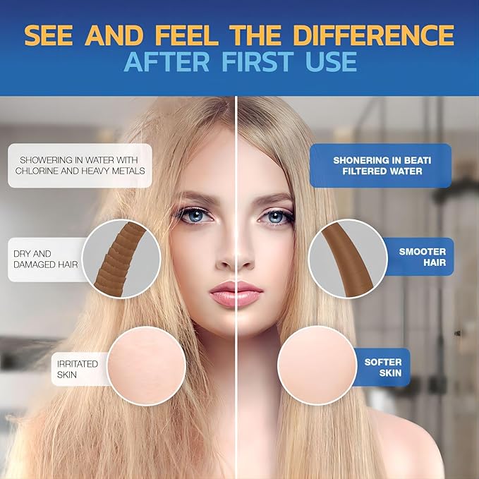 - Dual Functionality: The shower head and filter combo provides both high-pressure water flow and filtering capabilities to effectively reduce chlorine and fluoride from your water.Improve Skin and Hair nail Condition.