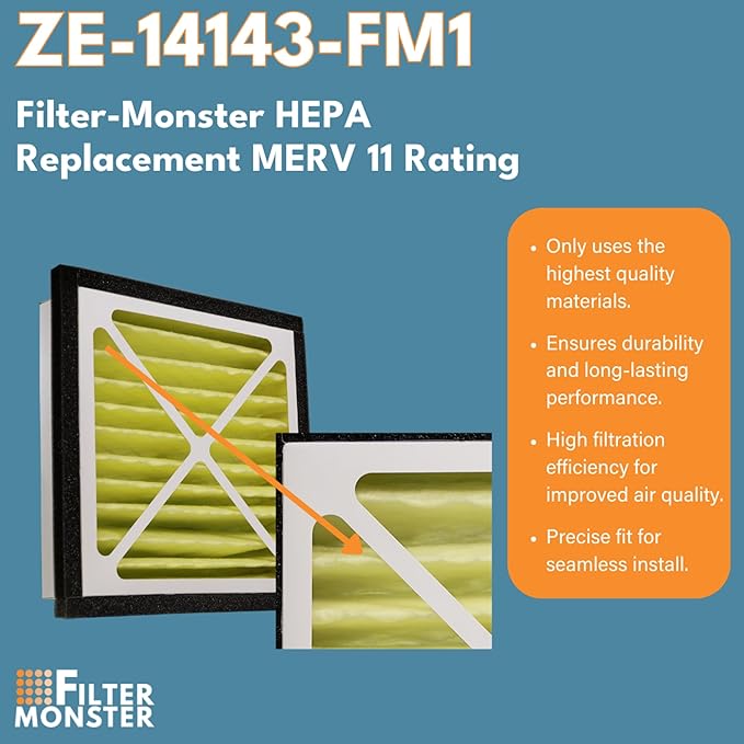 Filter-Monster - Replacement HEPA Filter Bundle - Compatible with Zephyr VGF Series 14x14x3 Whole Home Return Air Grille Filter, 2 Filter Replacement Bundle