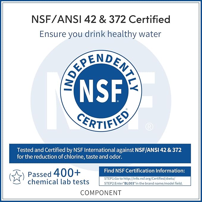- NSF Certification: BELVITA replacement for EDR3RXD1 water filter is tested and certified by NSF international against NSF 372 and NSF 42 certification
