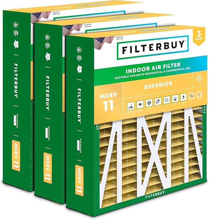 Filterbuy 20x23x5 Air Filter MERV 11 (MPR 1200) Allergen Defense (3-Pack), Pleated HVAC AC Furnace Filters for Bryant, Carrier, BDP, Day & Night, and Payne (Actual Size: 19.81 x 22.56 x 4.25)