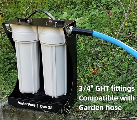 - Improve Taste & Smell with Dual Stage Freshwater Filtration: Provide you with visibly clean, great tasting water for drinking, cooking, showering and more in RV, Camper, Boat, Motorhome, Off-Grid Livings, Garden plants. The first stage is a 5-micron sediment cartridge, it reduces heavy sedimentsit, filters out dirt, sand, silt, and rust from water. The second stage is a coconut shell 5-micron CTO carbon block, it improves taste and smell, removes or reduces sediment, chlorine, chloramines, VOCs, and other contaminants. The filter is designed to handle high water usage and last for thousands of gallons.