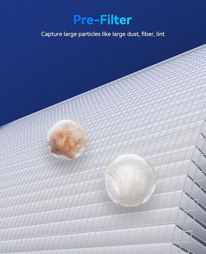 - ๐ง๐ฟ๐ฎ๐ฝ ๐๐ฎ๐ฟ๐ด๐ฒ ๐ฃ๐ฎ๐ฟ๐๐ถ๐ฐ๐น๐ฒ: Ultra-fine Nylon Pre-Filter captures large particles such as dust, lint, fibers, hair, and pet fur, it also helps to maximize the filterโs life