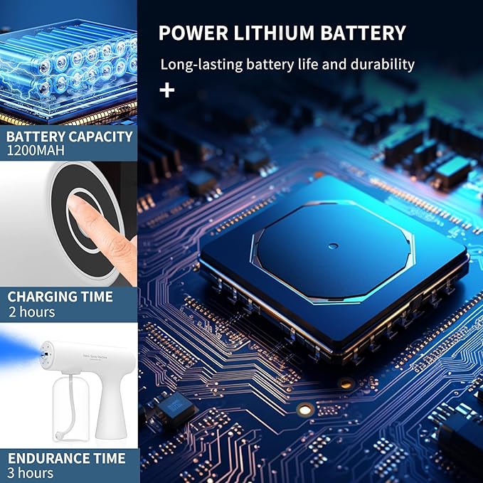 - Powerful and continuous : Achieve ultra-fine atomization for thorough coverage, with high and low gear adjustment options. Enjoy the convenience of a large-capacity battery