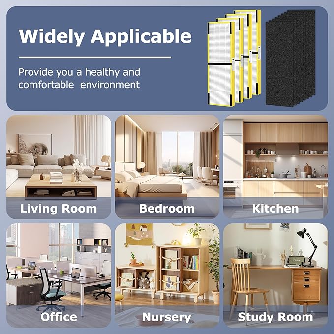 - Value Pack:Package includes 4 x H13 True HEPA Filter and 8 x Activated Carbon Filter. HEPA Filter Dimensions: H: 15-7/10" x L: 4-1/2" x W: 1-3/10", Carbon Filter Dimensions: H: 15-7/10" x L: 4-1/2" x W: 1/5". It is recommended to replace hepa filter every 6-8 months and carbon pre filter every 2-3 months to ensure the optimal performance