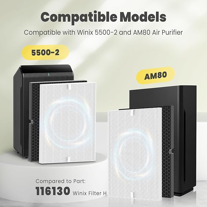 - š£šæš²š°š¶šš¶š¼š» šš¶š š³š¼šæ š¬š¼ššæ šš¶šæ š£ššæš¶š³š¶š²šæ & š¢š»š¹š š® š š¼š±š²š¹š š¦šš½š½š¼šæšš²š± - 116130 replacement filter is specially compatible with Winix 5500-2 and AM80 Air Purifier. Compared to Part # 116130 Winix Filter H. Warm Tips: Our upgrade sealing technology ensures airtight integration that prevents 99.97% of air bypass. However, this is an independently manufactured replacement part. Brand names are used solely to indicate compatibility