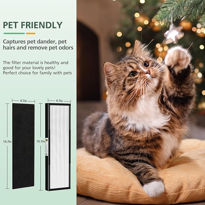 2 Pack FLT4825 HEPA Fil-ter B Replacement with Activated Carbon Pre-Filters Compatible with Air Puri-fier AC4825 AC4300 AC4800 AC4900 AC4850, Black