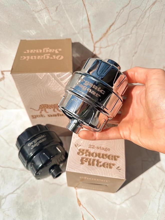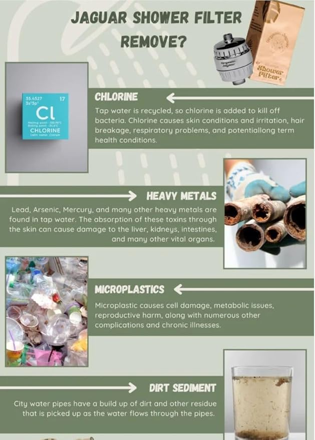 - SLEEK DESIGN FOR ANY BATHROOM: Modern, versatile design complements a variety of bathroom styles while delivering a practical filtration solution. Organic Jaguar’s shower head with filter is available in a black or chrome finish!