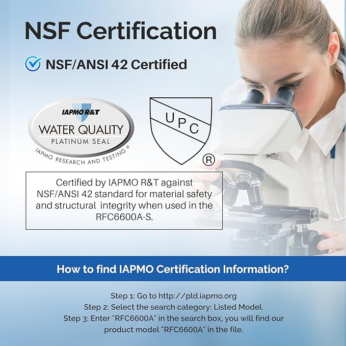 - External Testing Certification : IAPMO, ANSI, NSF