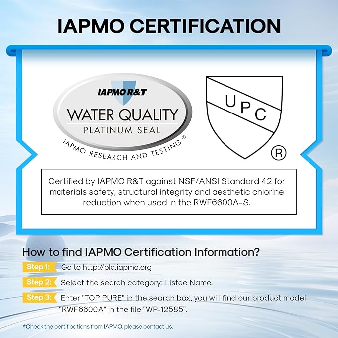 - Excel.Certifications- EXCELPURE RFC6600A replacement for 4396841 water filter tested and certified by IAPMO against NSF/ANSI 42 to reduce 99% Chlorine and color, enhance the taste, providing a fresher and more enjoyable drinking experience.