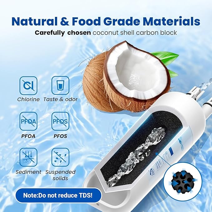 - Material : Lead-Free Material, Food-Grade Material, Advanced Activated Coconut Carbon Block