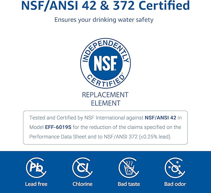 - [Food-grade materials]: We selected BPA-free and food-grade filter housing that passed NSF 372 certification for lead-free filtration. Overbest is here to protect your water safety.