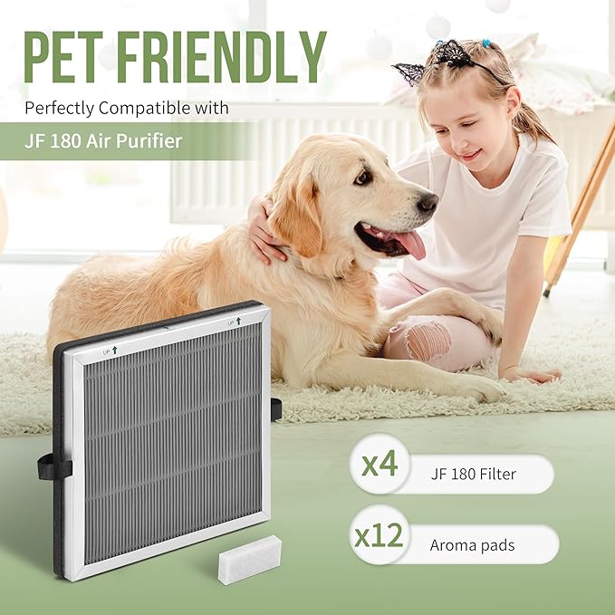 JF 180 Replacement Filter Compatible with Jafanda Air Puri-fier Filter JF180, 3-Stage Filtration with H13 HEPA and Activated Carbon 2-in-1, 2-Set (4 Filters+12 Aroma Pads)