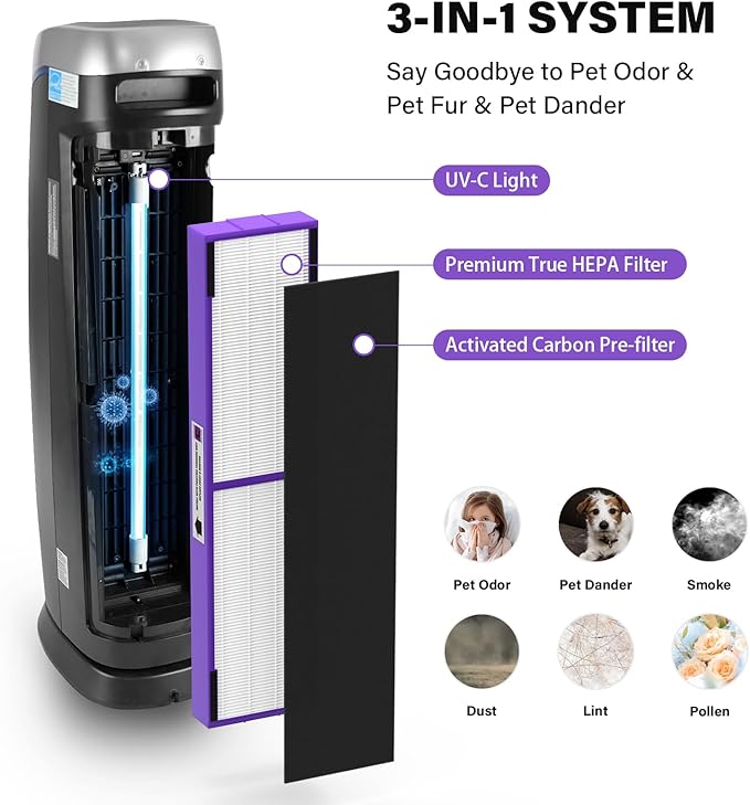 FLT5250PT True HEPA Replacement Filter Compatible with G-Guardian Air Purifier Filter C Pet AC5250PT AC5000E AC5300B AC5350W AC5350B CDAP5500, 2 True HEPA with 6 Carbon Pre-Filter