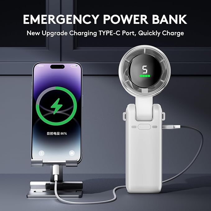 - 【5-Speed Adjustable, Super Long Standby】- Portable handheld small pocket fan adopts a upgraded 5 gear turbo wind for potent cooling. Adjust appropriate fan speed by pressing the power button repeatedly. Handheld fan with built-in 5000 mAh large-capacity battery and Type C charging port, fully charged in only 3 hours. You can control the airflow from natural, slow, medium, fast and super fast according to different needs.