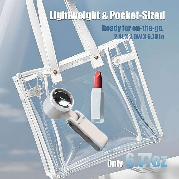 - 【Travel Essential & Perfect Summer Gift】-This powerful handheld Fan measures 6.7 x 2.3 x 2 inches, you can put it in your pocket or bag and take it wherever you want to go, enjoy the cool wind anytime anywhere. Suitable for kitchen, home, office, indoor, outdoor, commuting, shopping, makeup, skin care, traveling, etc., The best gift for girls, boys, men, women and children.