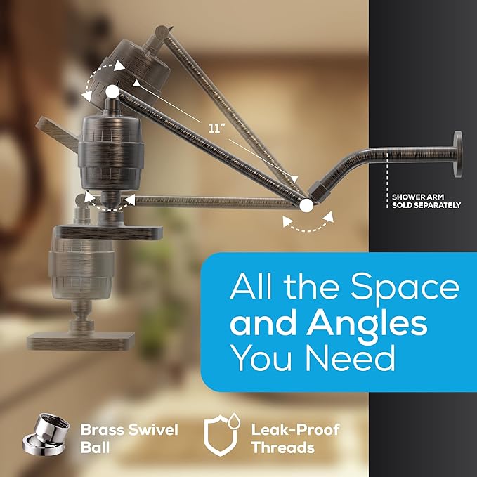 - IDEAL SHOWER ADJUSTMENT: Allows adjustment of shower angle and height as desired. Easily raise the shower head for full-body coverage or lower it for easier reach. The 11" shower arm extends the rain shower head several inches from the bathroom wall for a more spacious and comfortable shower experience.