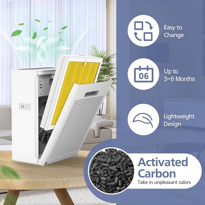 - 【EASY TO INSTALL】It is recommended to replace the G3 air filter for pet every 3-8 months according to your living air quality. It Installs simply and fits snugly, no tools required. Please take off the plastic packaging from the new filter before use. After replacing, hold down on the timer button for about 5 second to reset. The red light filter change will go away