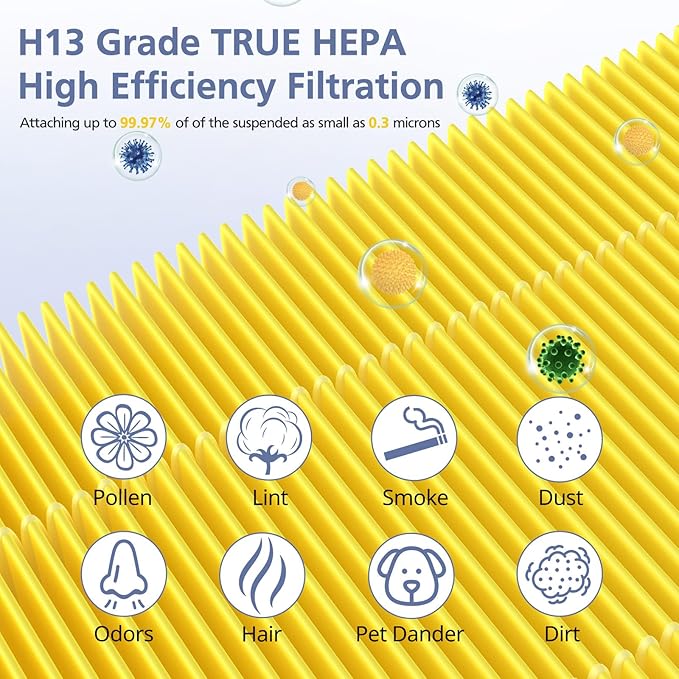 - 【3-IN-1 FILTRATION SYSTEM】Our premium A3 hepa pet filter is designed with 3 layers of filtration. Preliminary Filter effectively collects hair, pet danders, dust, and other large particles; H13 True HEPA Filter can effectively attach on 99.99% of particles as small as 0.1 microns; Activated Carbon Filter can effectively take in air odors caused by cooking, pets, etc., to achieve rapid deodorization effect