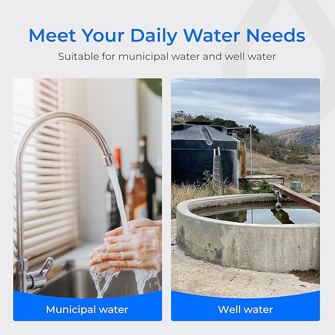 - ๐๐ญ๐๐๐ฅ๐ ๐๐๐ญ๐๐ซ ๐ ๐ฅ๐จ๐ฐ: Enjoy a consistent water flow with our premium whole-house water filter. It is designed to meet your daily water needs, whether municipal or well water.