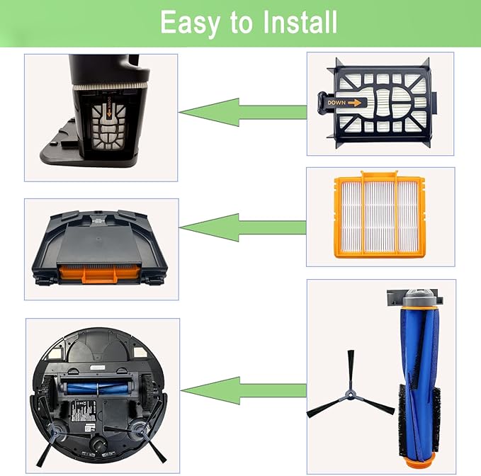 - Valuable Package: 1 Main Brush, 3 Filters, 1 Roller Brush Cover , 6 Side Brushes, 1 Pre Filter, 1 Filter & 1 Pre-Motor Foam & Felt Filters, 1 Cleaning Tools