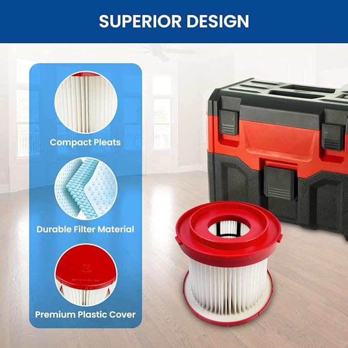 - HEPA Vacuum Filter : The Vacuum Filter for Milwaukee are masters at sucking up fine dust. Which can Capture 99.97% of particles as small as 0.3 microns. Crafted with compact pleats to increase filtration area. Effectively removing wood dust, construction debris, and dirt.