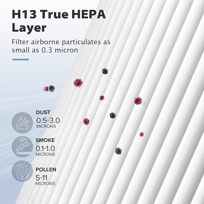 - 【4-IN-1 Filtration】MK06 & MK01 air purifiers filter use 4-Stage filtration design with Pre-filter, Efficiency filter, Silver Ion Layer and Activated Carbon filter which attracts particles as small as 0.3 microns, including pet dander, pet hair, odor, dust, smoke, pollen, VOC's and other pollutants in the air.