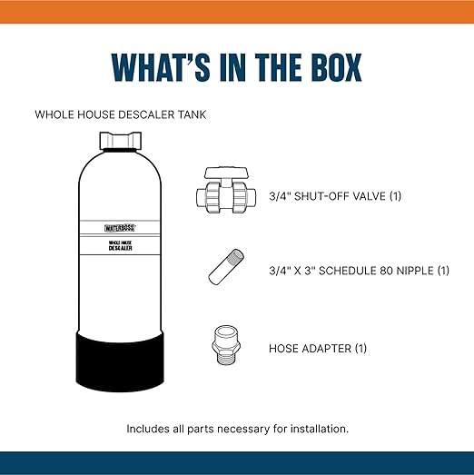 - Saltless Scale Control - WaterBoss’ Whole House Descaler prevents scale buildup in pipes and plumbing using a salt-free, chemical-free method. No maintenance such as cleaning, backwashing, salt refills, or electricity is needed. This system does not soften water or eliminate minerals that cause hard water.