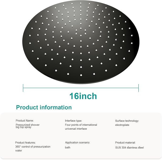 - Extra-wide 16-inch coverage mimics gentle natural rainfall, avoiding the "needle-like" spray of cheap plastic shower heads.