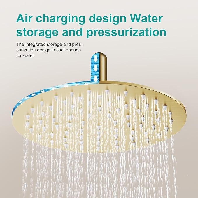 All Metal Rain Shower Head - Heavy Duty Stainless Steel, Easy Install, High Water Flow, Ultra-Thin Modern Design for Bathroom (F-Brushed Gold, 8)