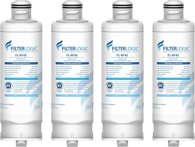 Filterlogic DA97-17376B Refrigerator Water Filte, Replacement for Samsung® HAF-QIN/EXP, DA97-08006C, RF28R7201SR, RF28R7351SG, 4 Pack