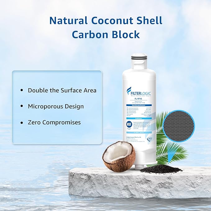 - Premium filter material: Here at Filterlogic, we adopt 100% natural coconut shell carbon block with the surface area doubled.