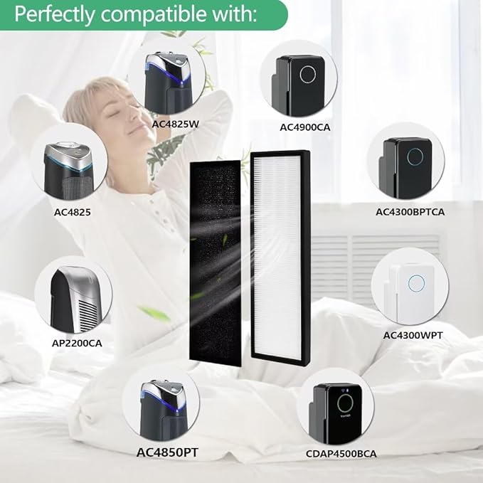 Universal Air Cleaner Carbon FLT4825 HEPA Replacement Filter B Compatible with GermGuardian Air Purifiers AC4825 AC4300 AC4800 AC4900 AC4850 Series