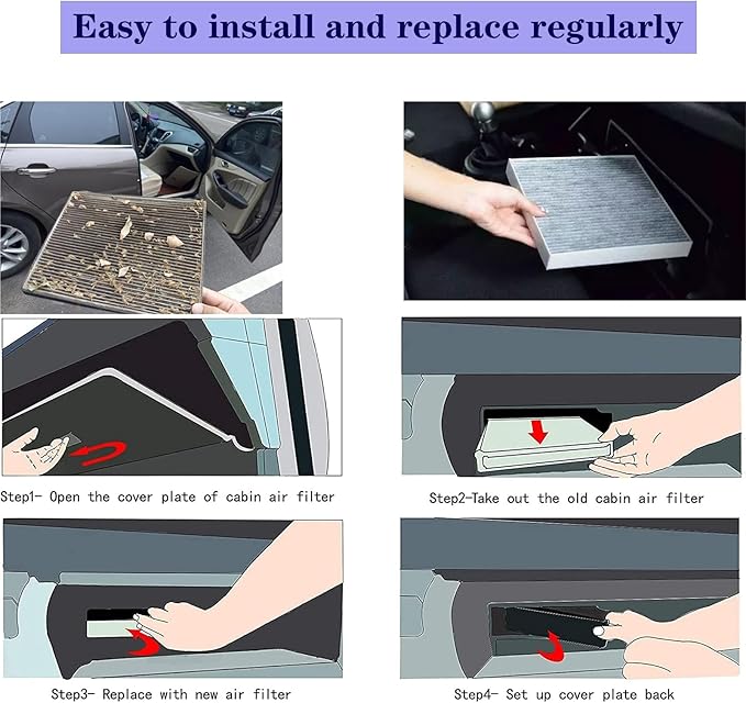 - Easy Installation: Exact size match for the OEM cabin filter. Easy to install within 5-8 minutes. Please read air flow arrow on the side before installation.