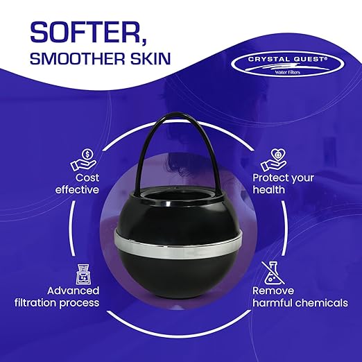Crystal Quest Bath Ball & Replacement Filter Cartridge Bundle - Water Filter System-Reduce Contaminants for Softer &Smoother Skin-Effortless & Quick Installation| Bundle and Save (Black)