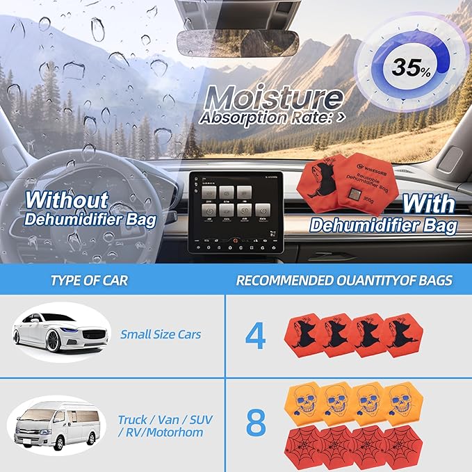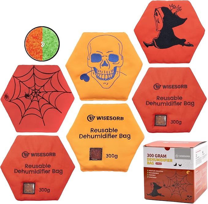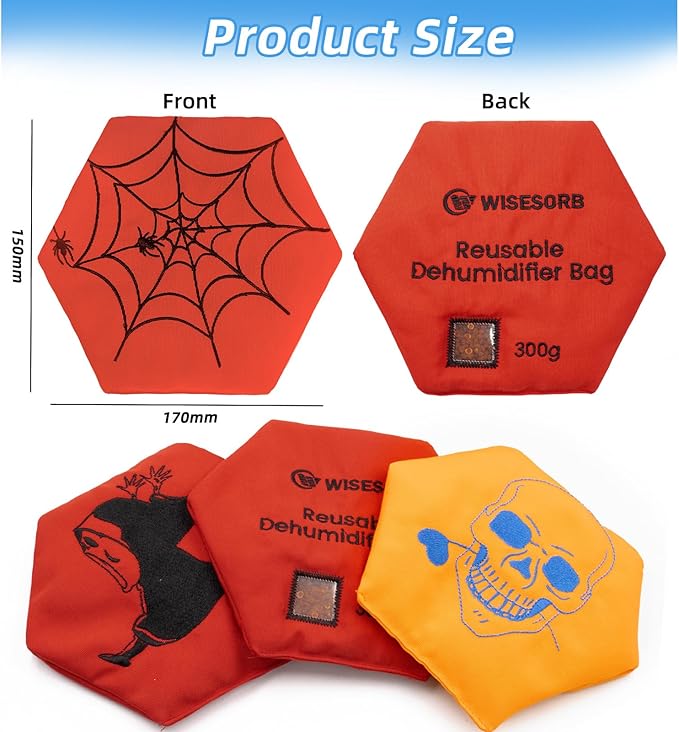 - 【Orange Indicating Silica Gel Beads】: Wisesorb dehumidifier bags are filled with 100% orange indicating non-toxic and cobalt chloride-free silica gel, which changes color to light green once saturated with moisture. Each orange indicating desiccant beads measures 2-4mm in size and undergoes color transformation within a humidity range of 20%-50%RH. It's important to understand that when the beads begin to change color, it doesn't necessarily indicate complete saturation. Instead, they will continue absorbing moisture until reaching 50%RH.