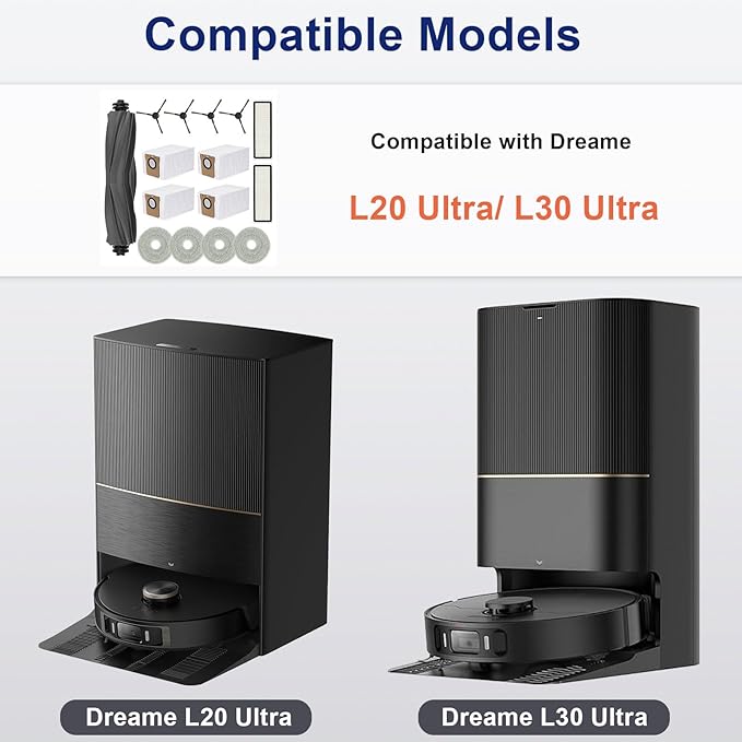 - COMPATIBLE WITH: This Accessories kit is perfectly compatible with Dreame L20 Ultra/ L30 Ultra Robot Vacuum. Works like the original replacement but we don't claim these are original dreame, it is only used to prove the compatibility of accessories. Please kindly check your vacuum cleaner model before purchasing